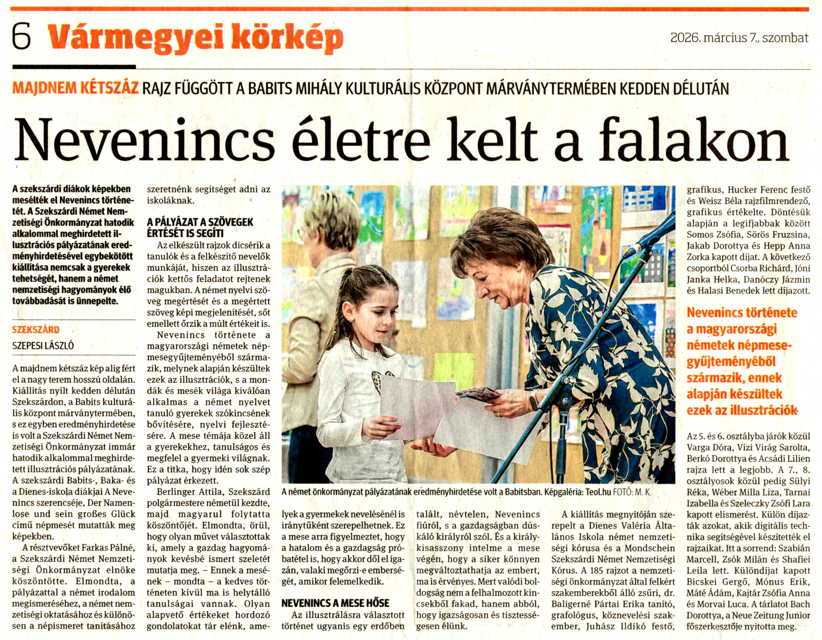Egy régóta tervezett kiállítás nyílt meg szerdán késő délután Szekszárdon, a Babits Mihály Kulturális Központ márványtermében. Még tavaly decemberben a Szekszárdi Német Nemzetiségi Önkormányzat egy rajzpályázatot hirdetett gyerekek számára, amelynek témája a németek betelepülése Magyarországra.