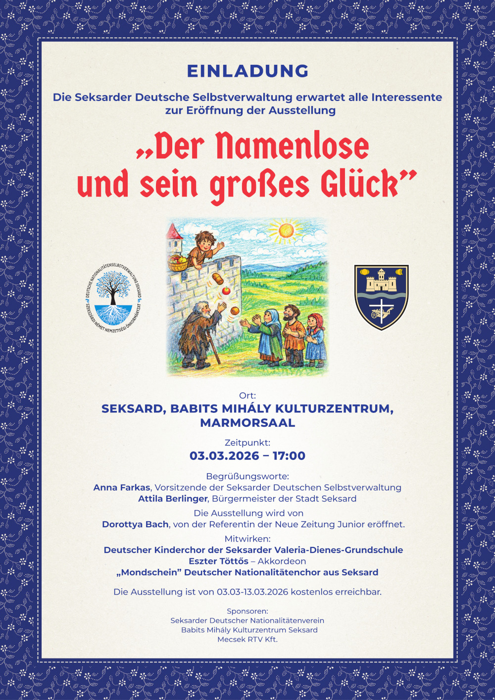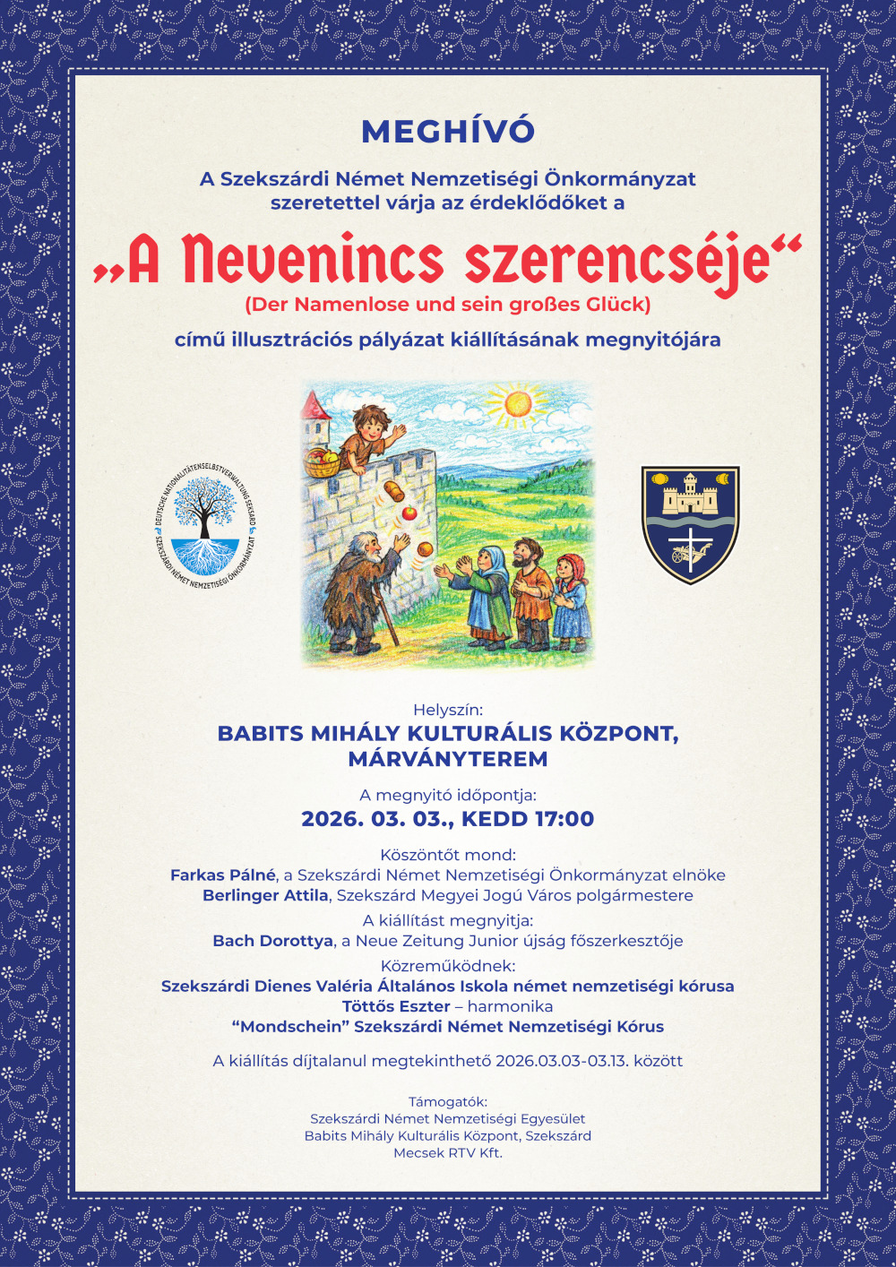 A Magyarországi Németek Országos Önkormányzata és a Szekszárdi Német Nemzetiségi Önkormányzat tisztelettel meghívja Önt a szekszárdi német nemzetiségi tanösvény ünnepélyes átadására.