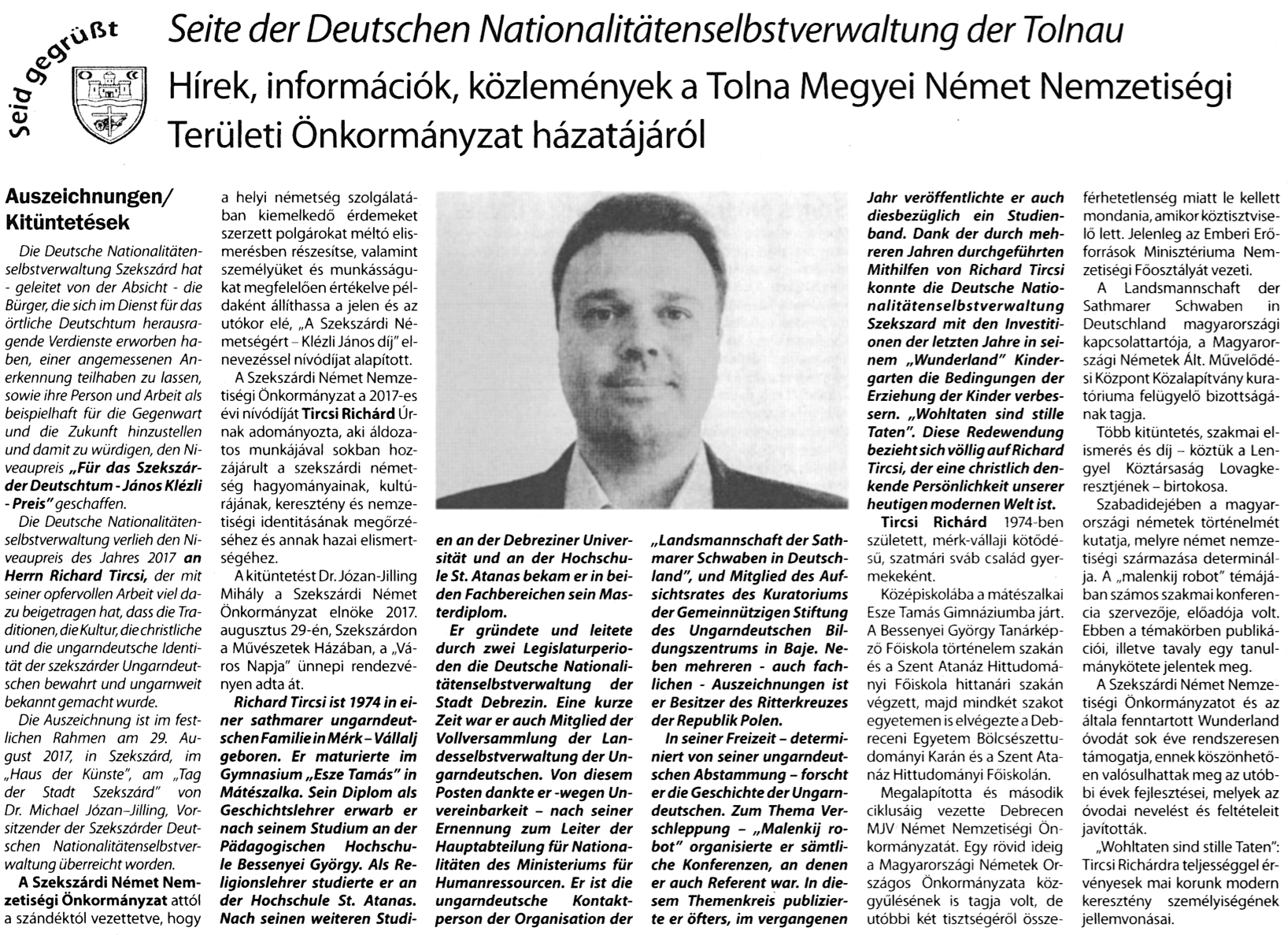 Tárgy: Tájékoztató a Szekszárdi Német Nemzetiségi Önkormányzat 2017 évi működéséről