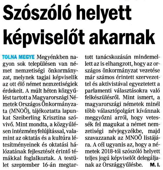 A Magyarországi Németek Országos Önkormányzata írásba foglalta céljait és megoldásait