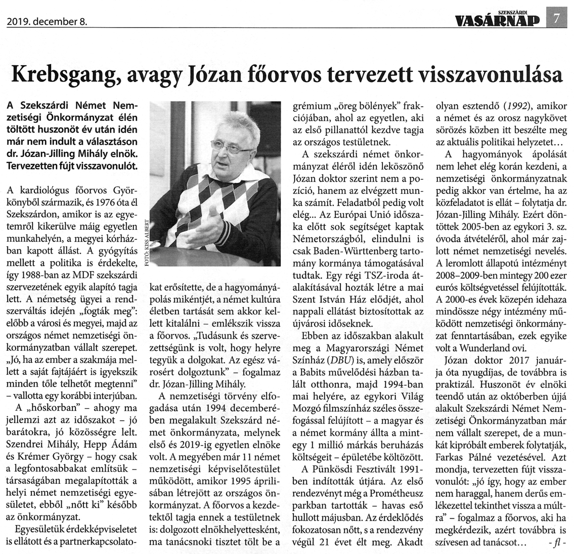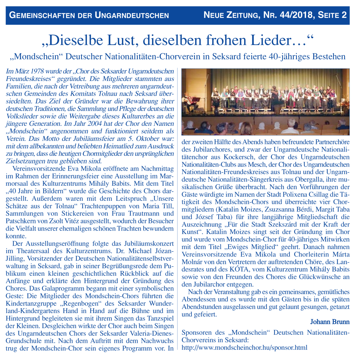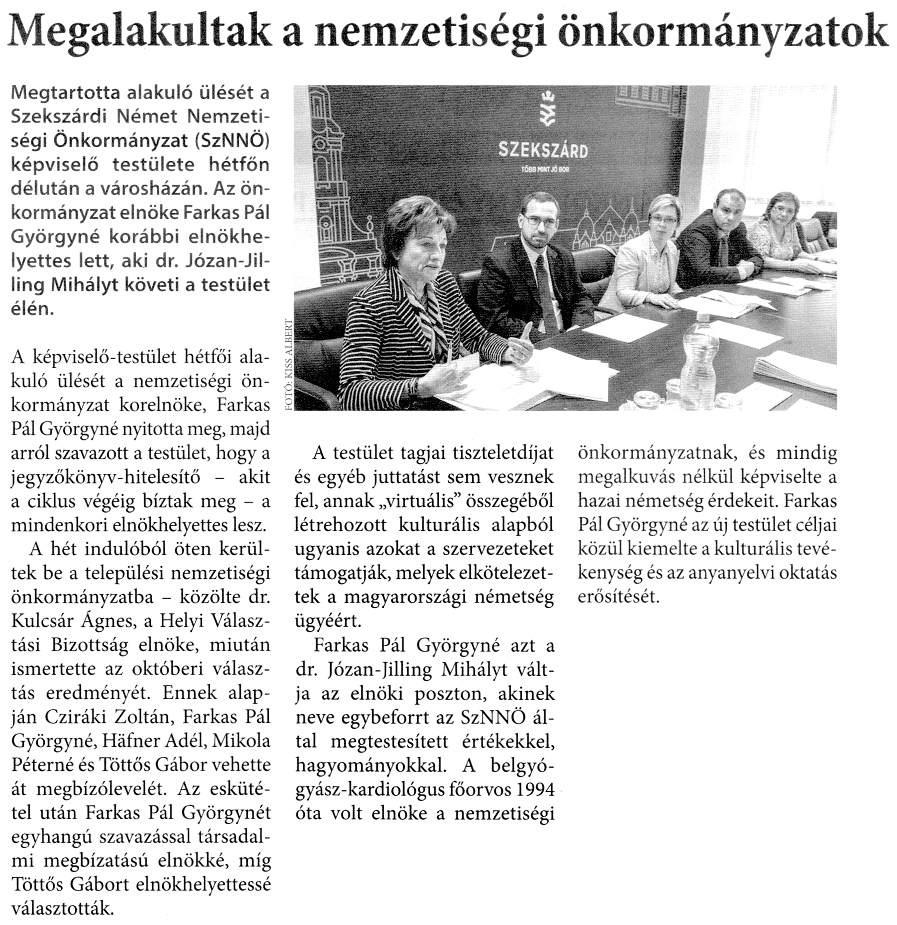 Tárgy: Tájékoztató a Szekszárdi Német Nemzetiségi Önkormányzat 2018 évi működéséről